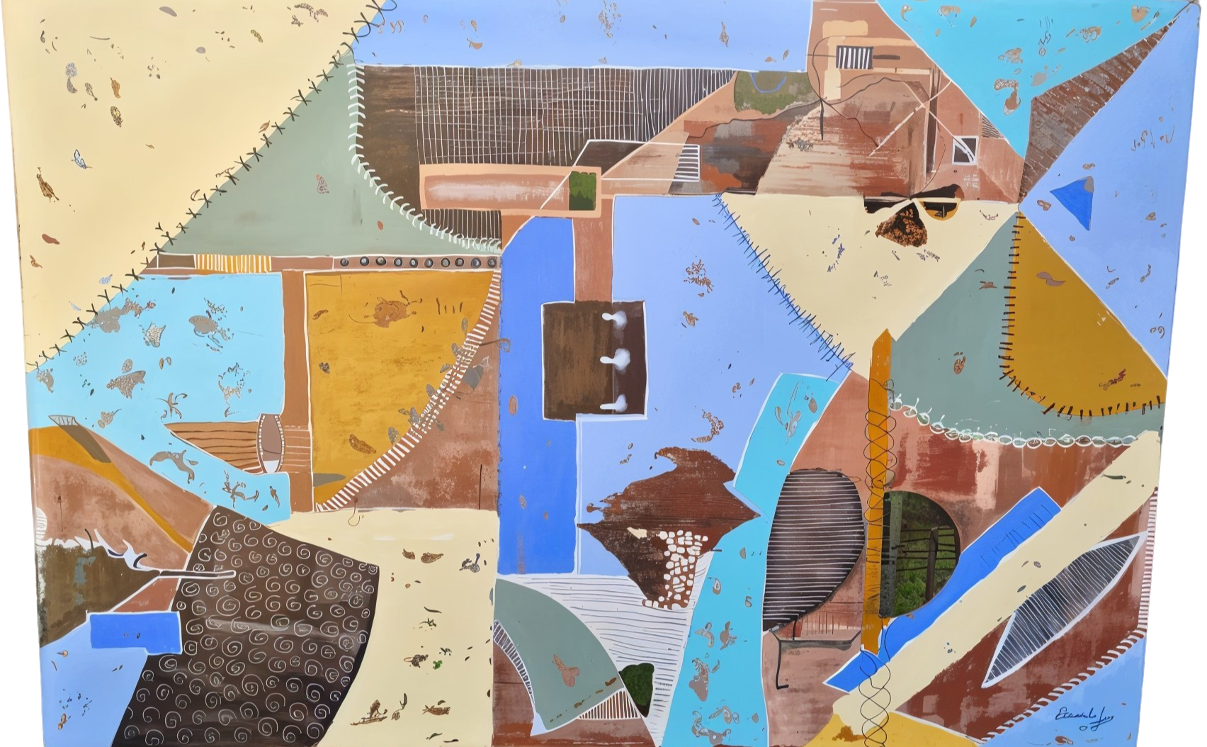 Una exploración visual sobre la fragmentación de la experiencia humana. La obra utiliza texturas orgánicas y costuras simbólicas para representar el proceso de unir retazos de vida. En este lienzo, la realidad del hogar se entrelaza con la libertad de los sueños, ofreciendo una narrativa visual única sobre la evolución y la memoria personal.